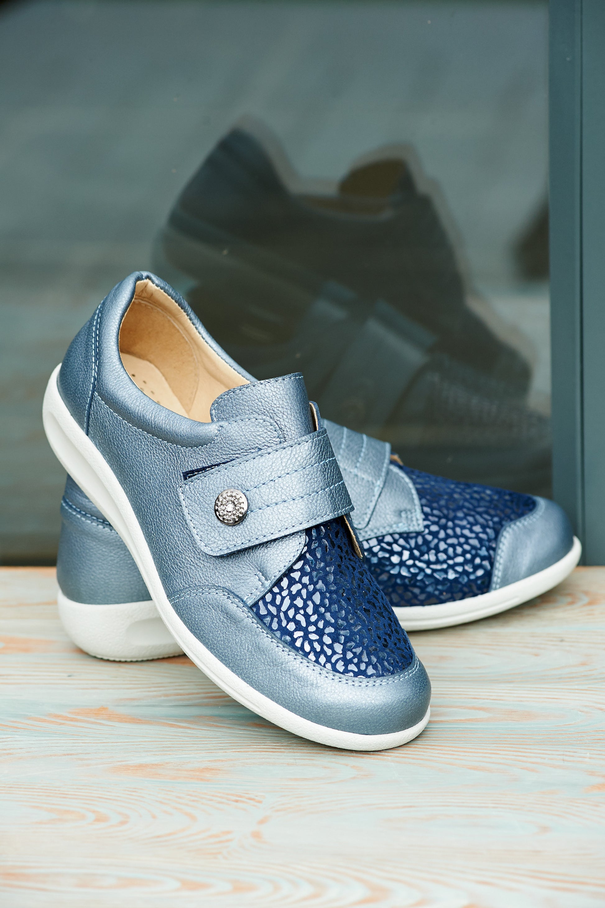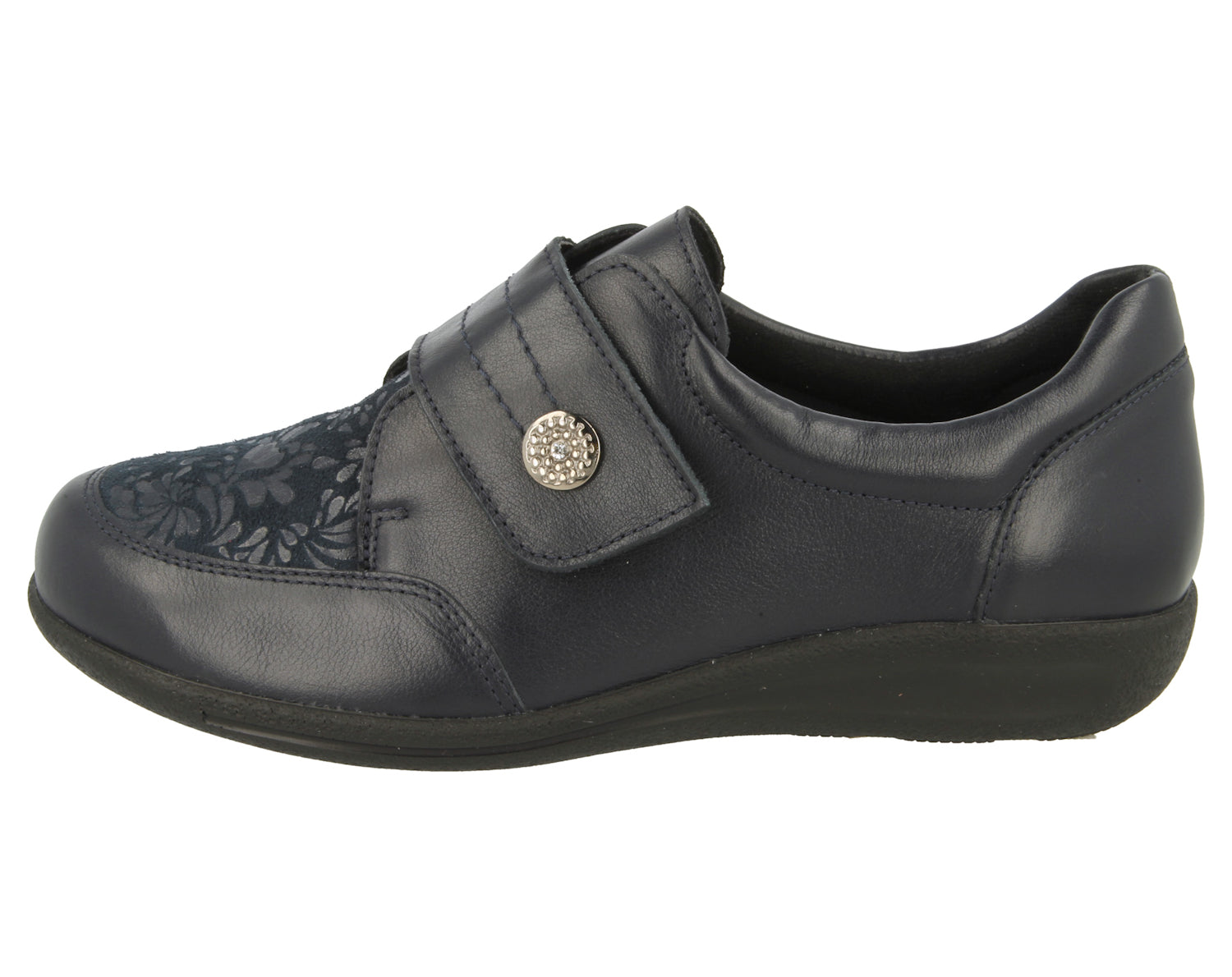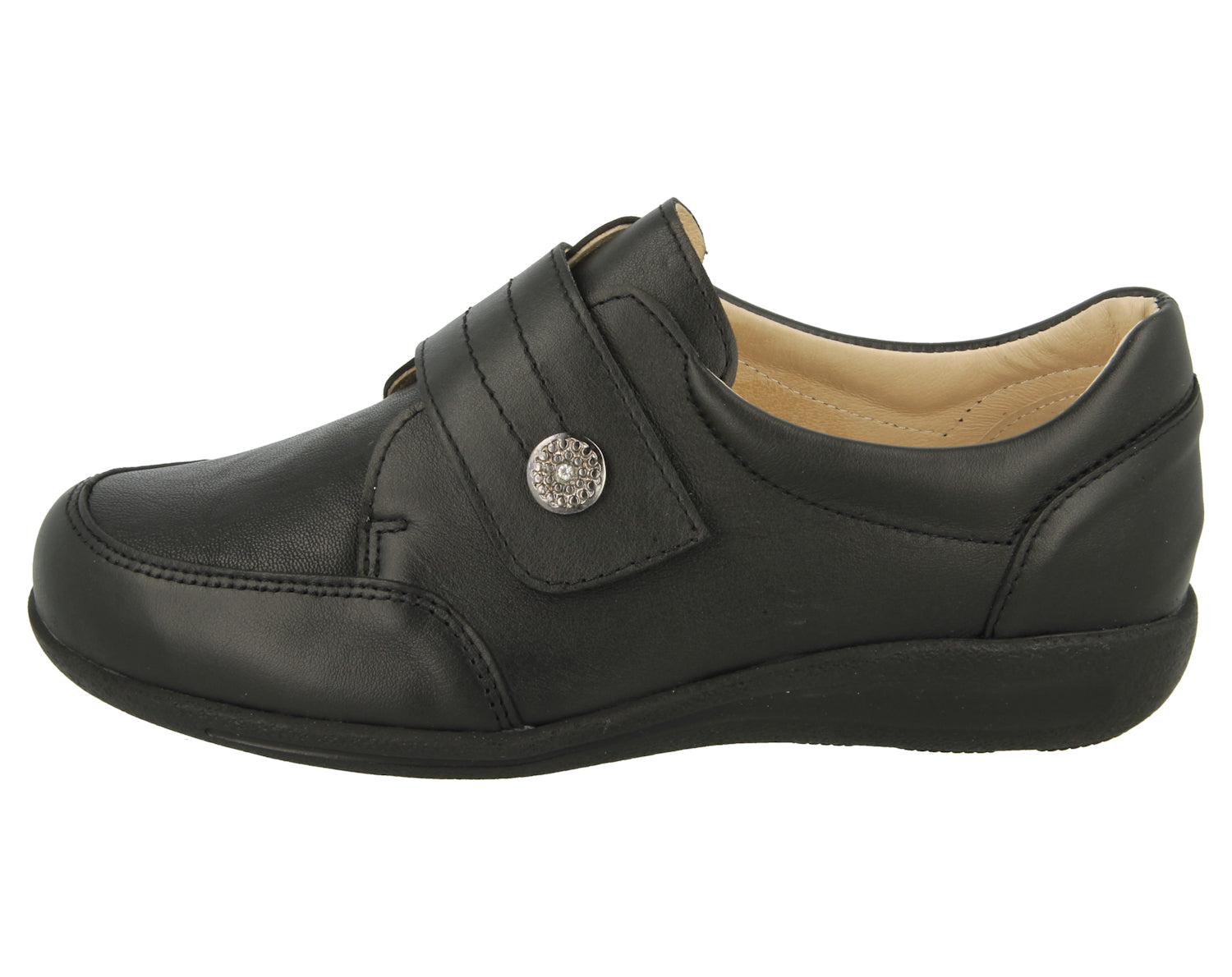 Attractive design in supple leather with a stretch panel which expands to accommodate any awkward toes.